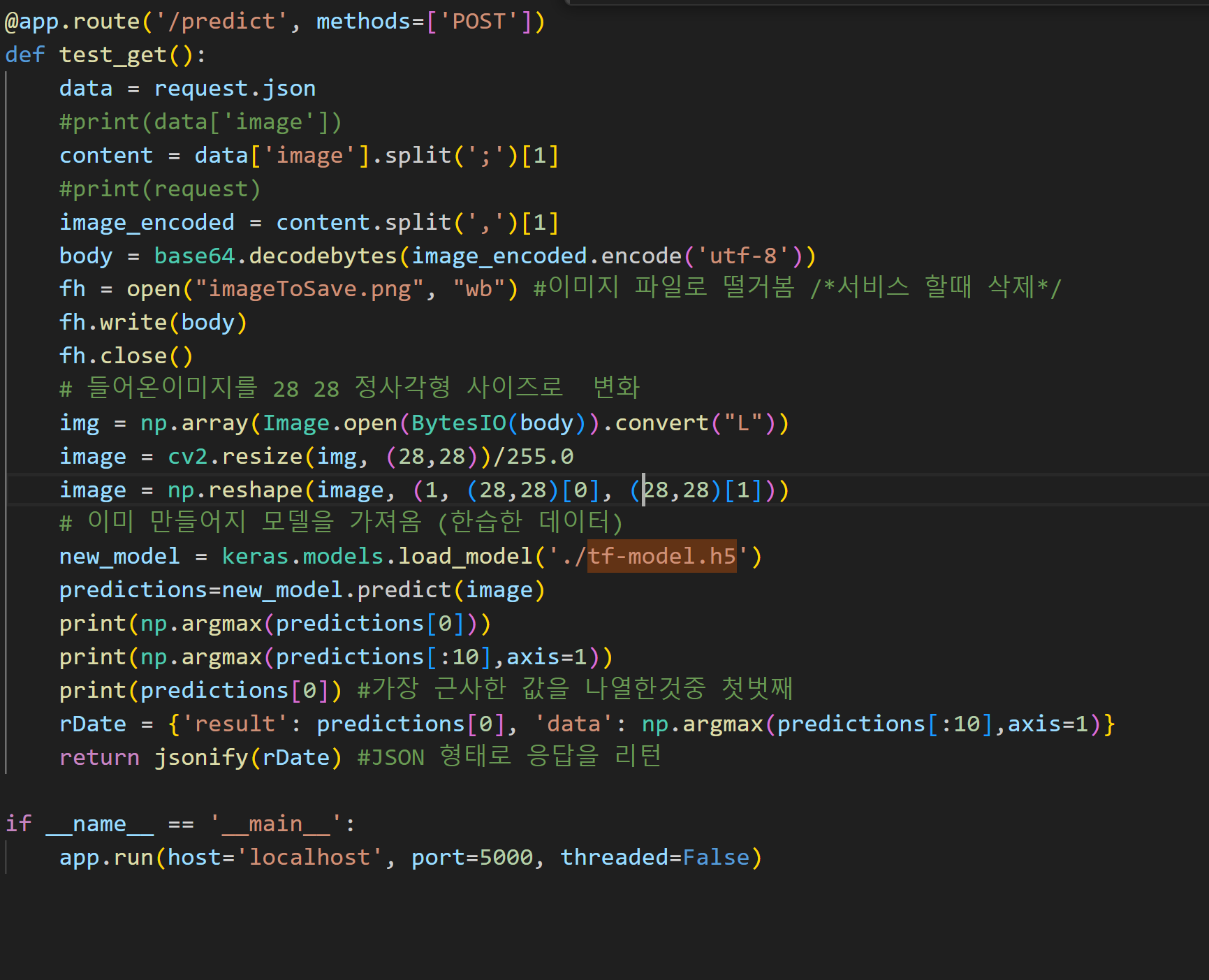 파이썬 flask에서 텐서플로 숫자 맞추기 웹서비스 해보기 본문