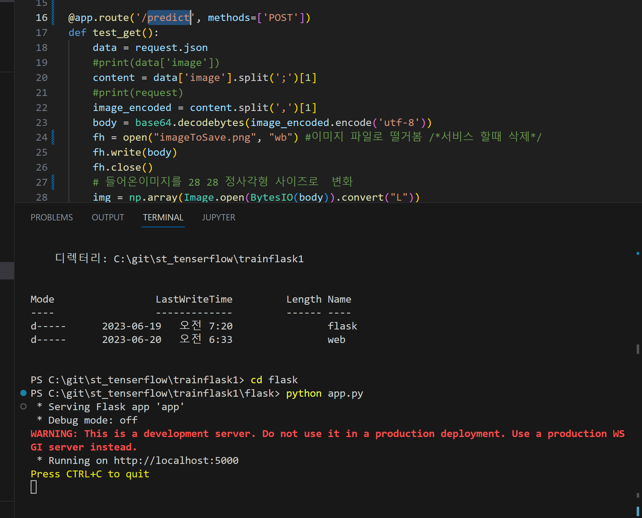 flask 실행 모습