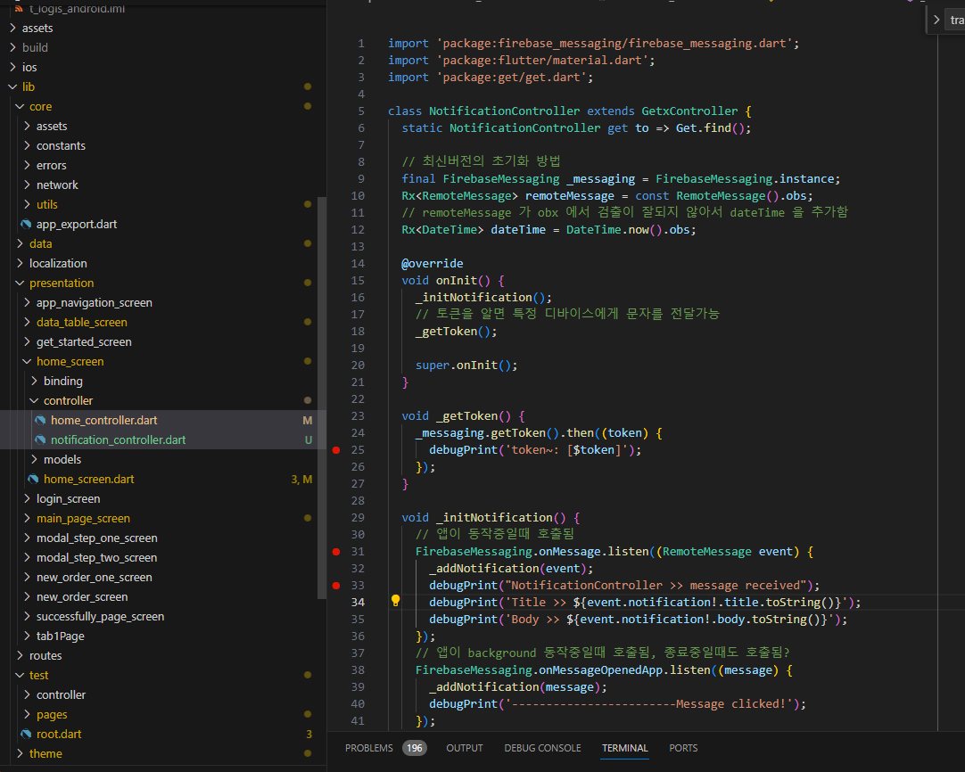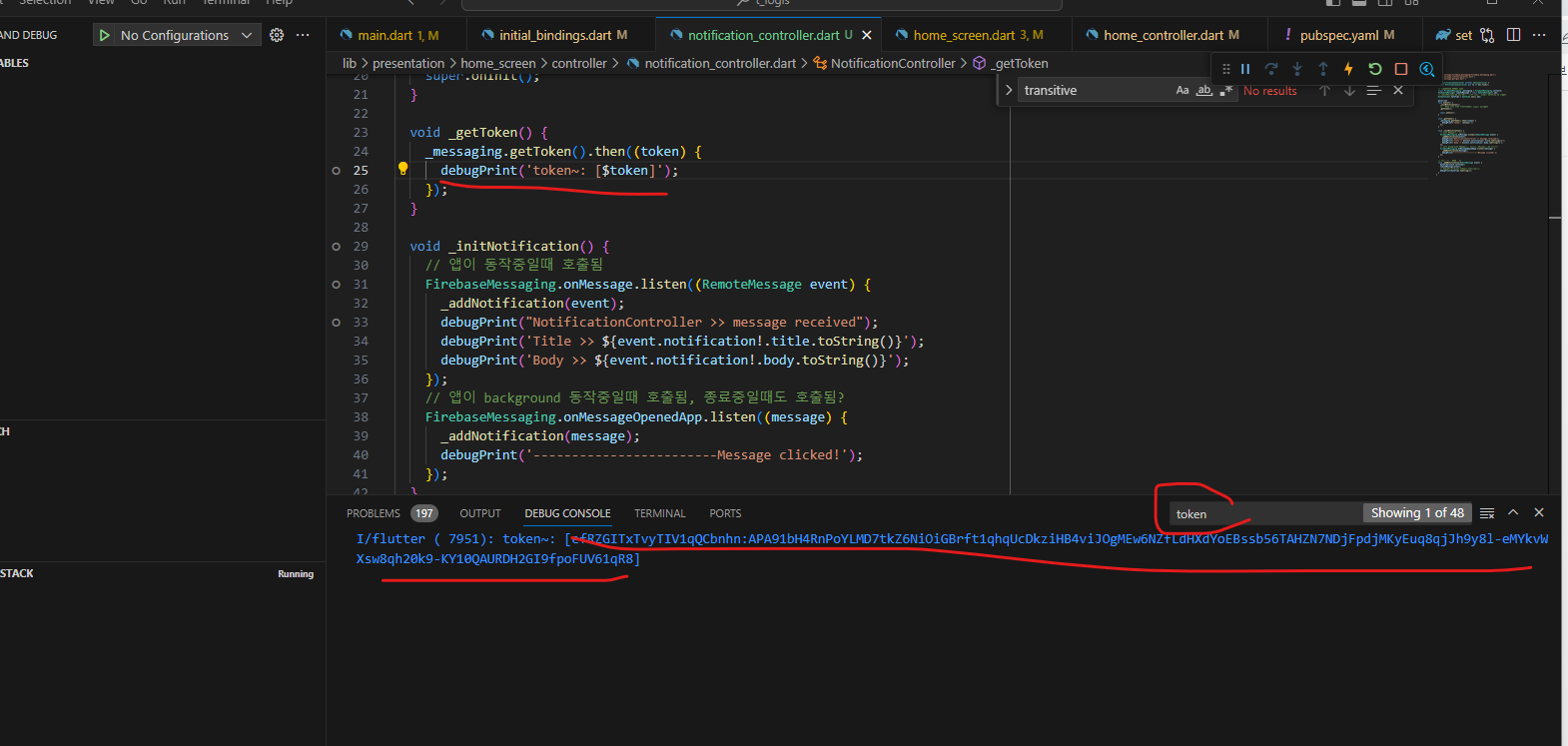 플러터 디버깅 과정에서 토근 파일 찾아냄 나중에 로그인할때 서버에 토큰을 업데이트해서 메시지 보내는데 활용