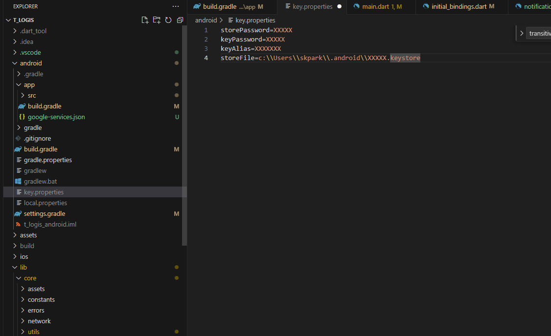 storeFile=c:\\Users\\skpark\\.android\\XXXXX.keystore