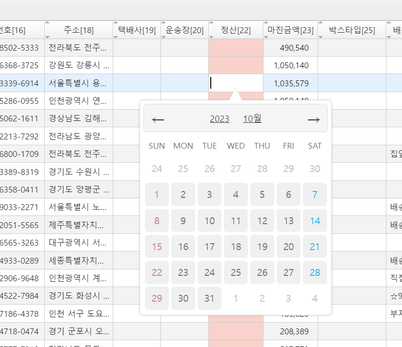 공급가액 수량 변경가능![]() | 정산일자 등록![]() | 택배업체 적용![]() |