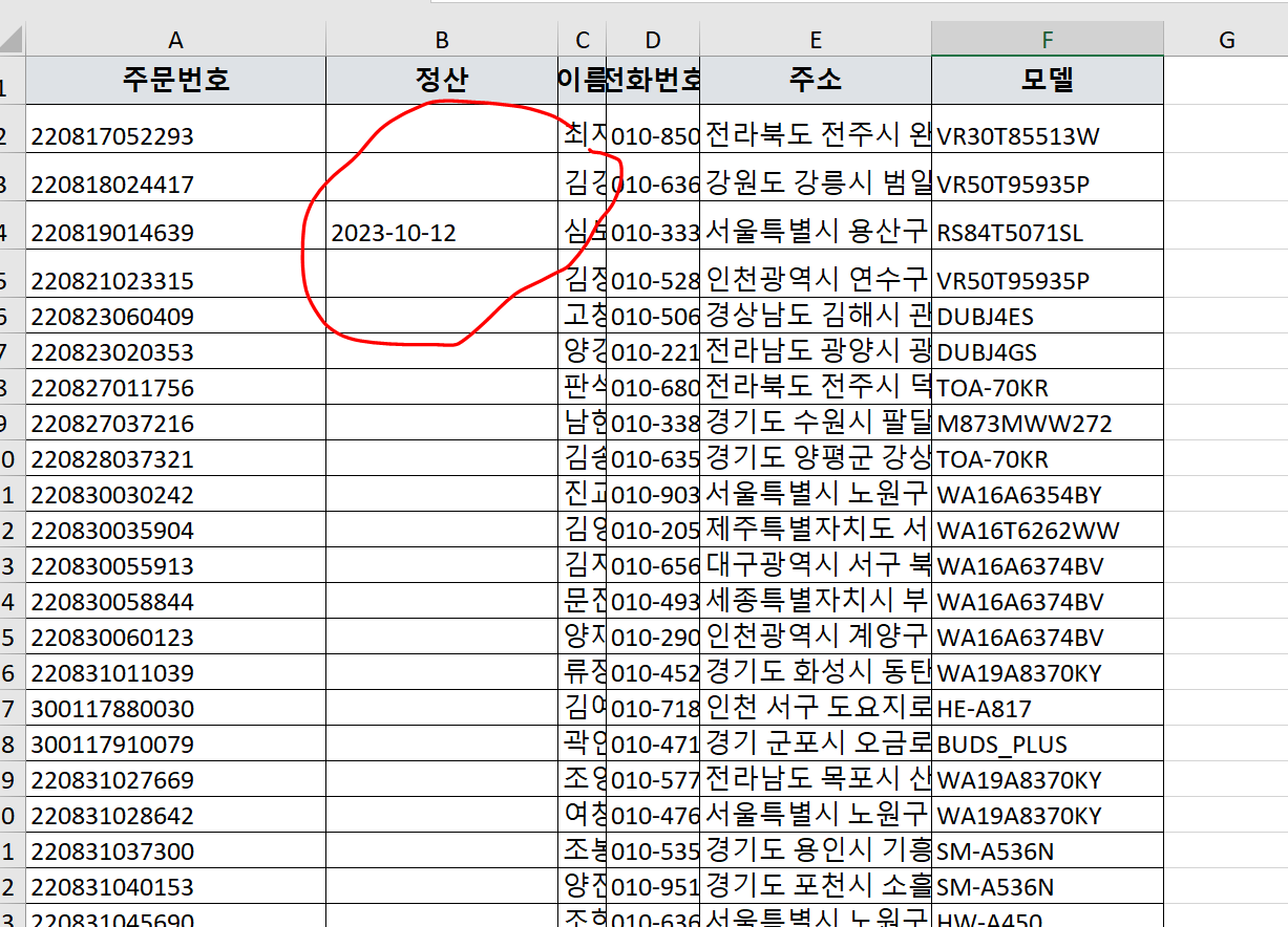 - 정산데이터 역시 주문NO로 업로드 시킨다.