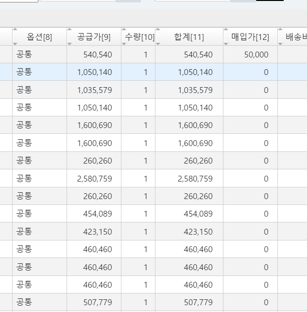 매입NO![]() | 매입NO에 따른 매입가격 변경![]() | |