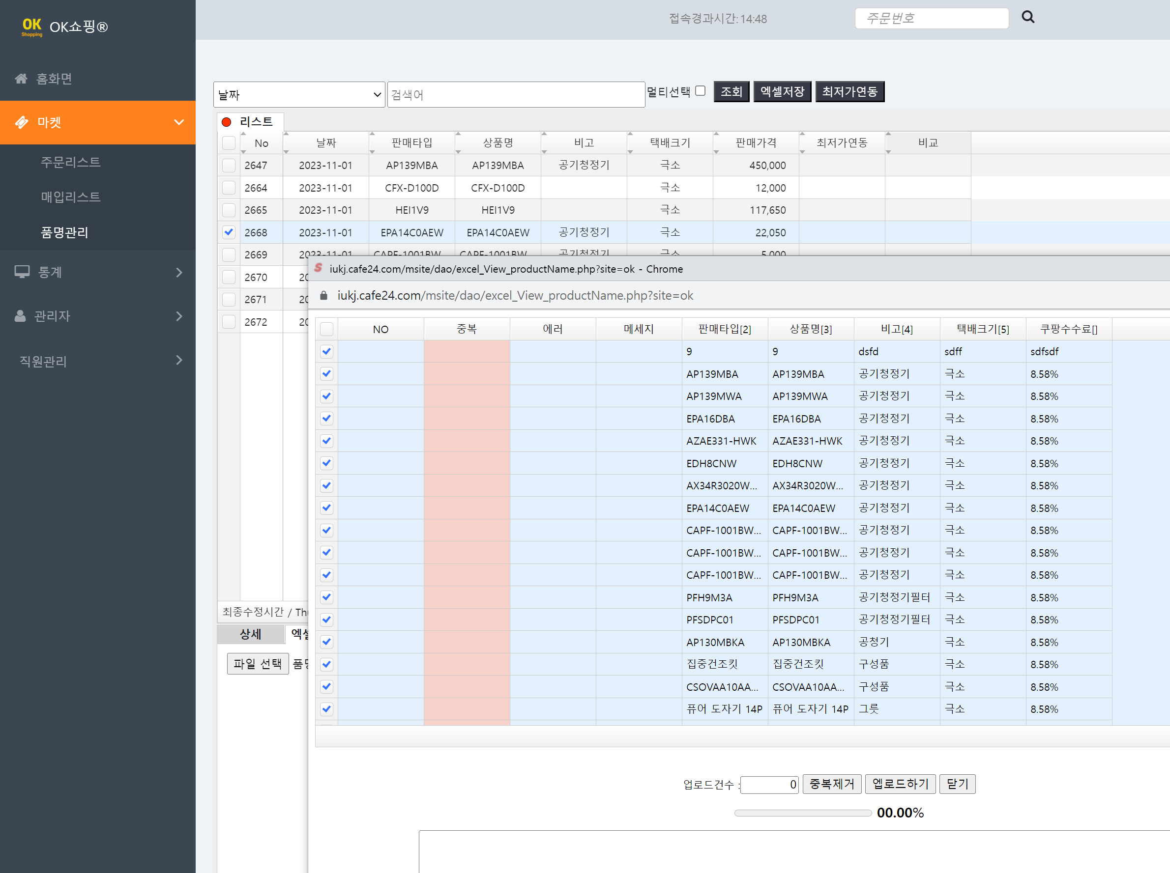 - 쇼핑몰관리시스템#매입관리#시트메타#매입채널#엑셀업로드