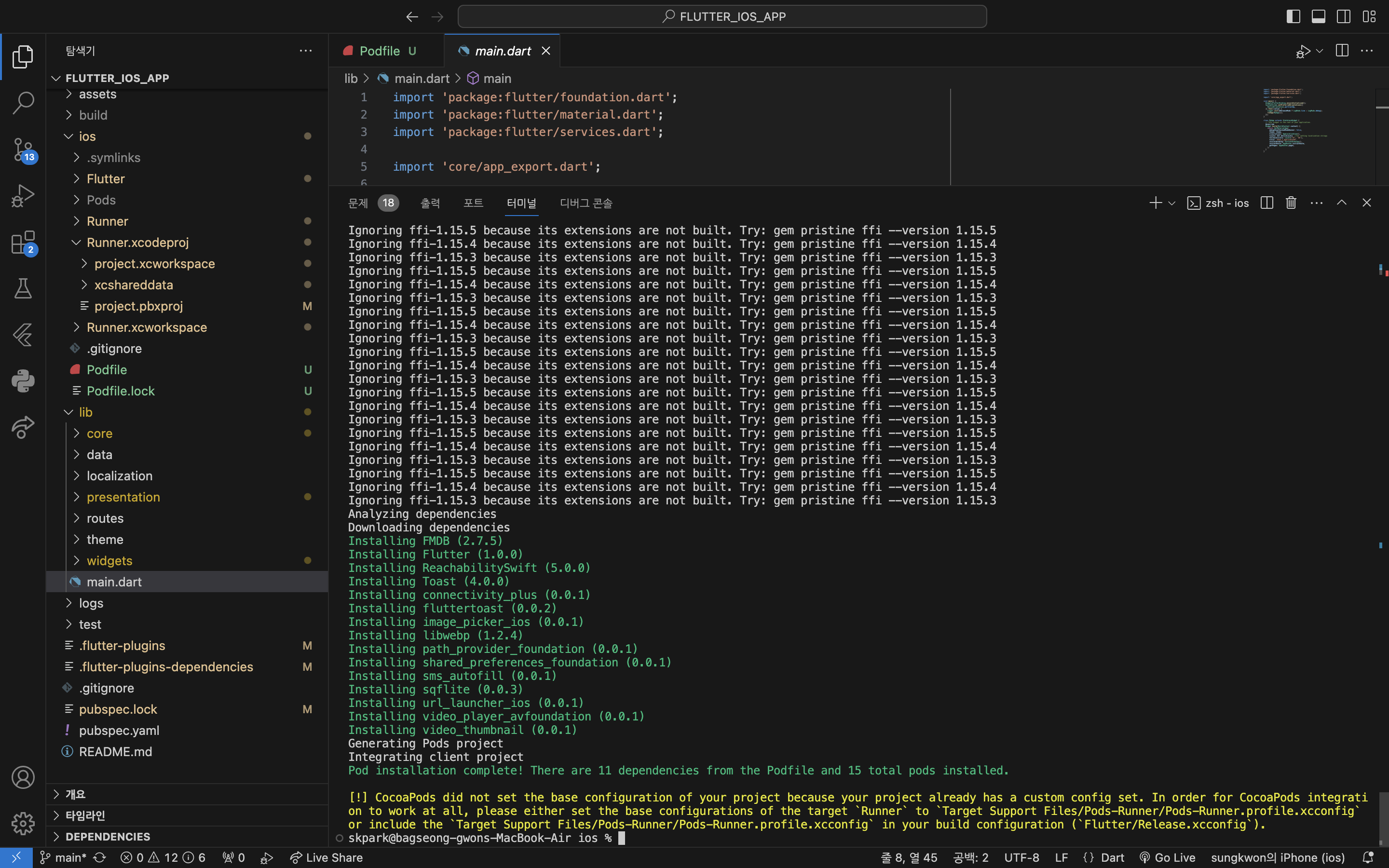 요즘 프로젝트에서 다시 플러터 ios 포팅을 위해 맥북 ios를 꺼내 들었다.