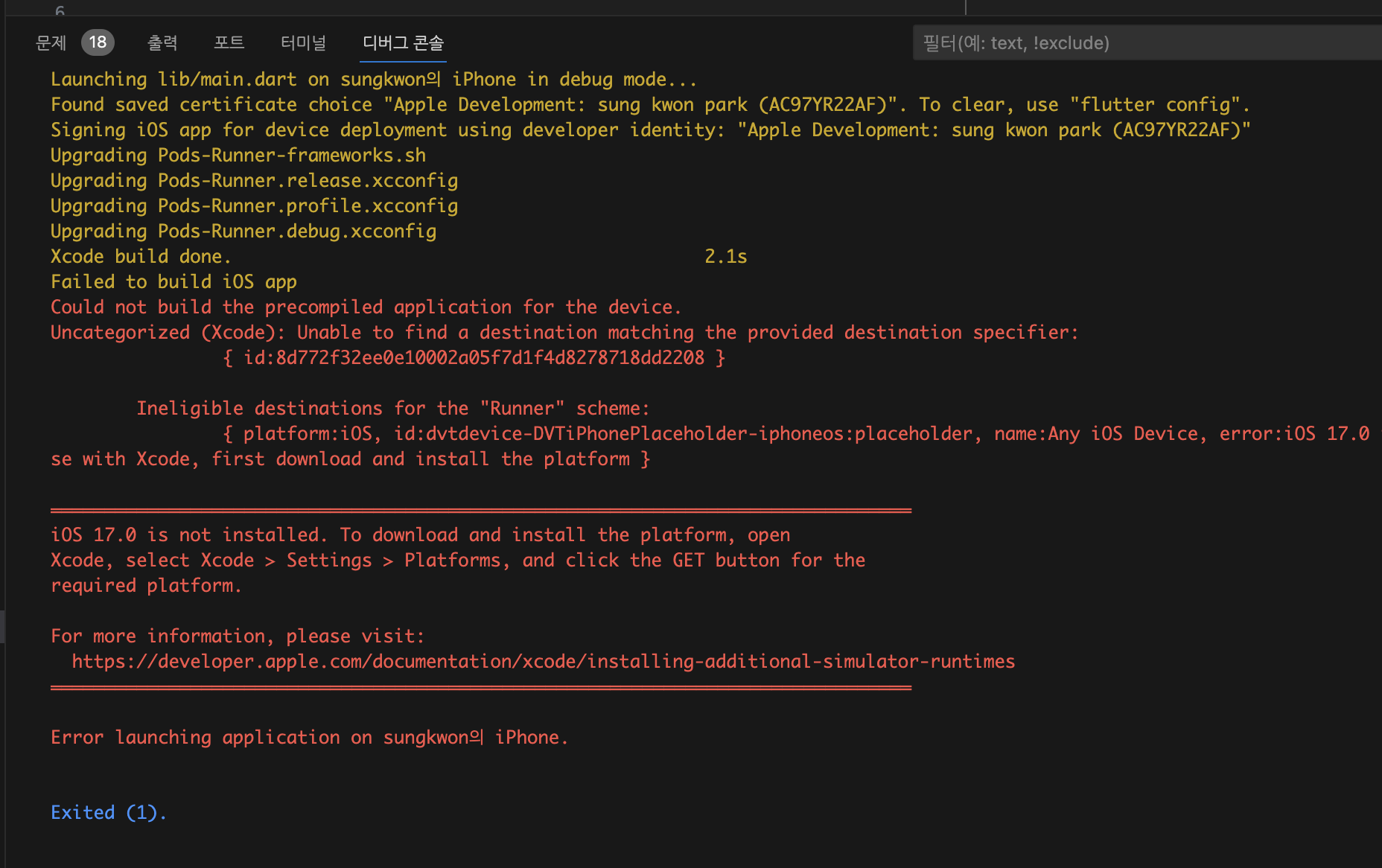플러터 ios 셋팅 작업 2023.11.29 일 본문