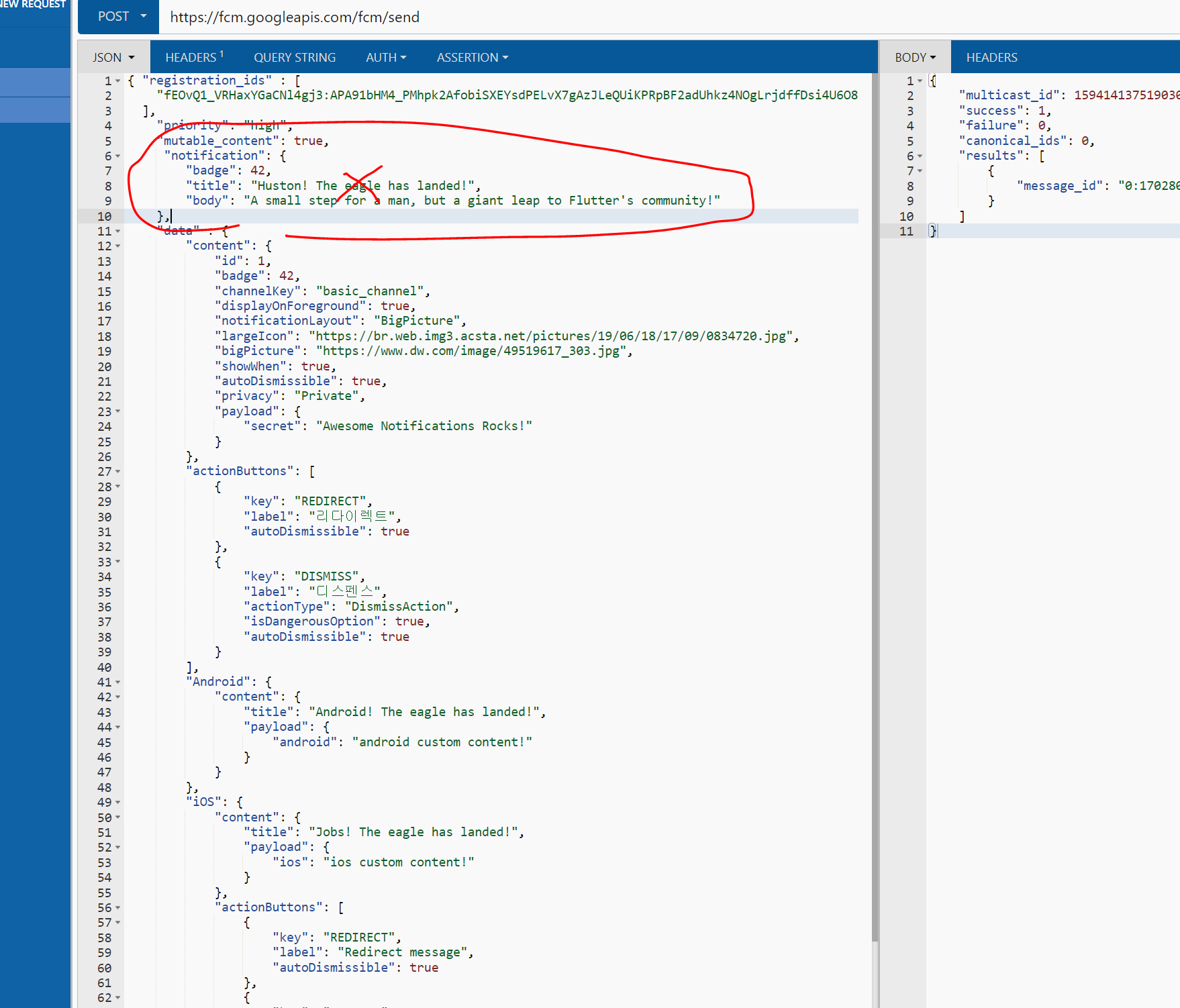하지만 저렇게 하면 메시지가 두번 울린다. 기본 fcm notification 이 뜨고 AwesomeNotifications 이 뜬다.