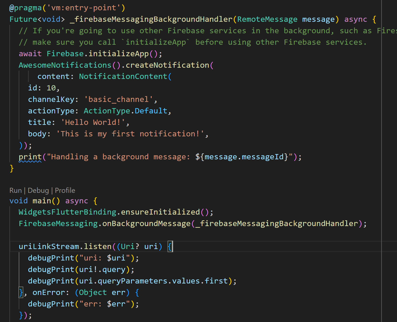 플러터 AwesomeNotifications 알림 백그라운드 처리를 위해 삽질 본문