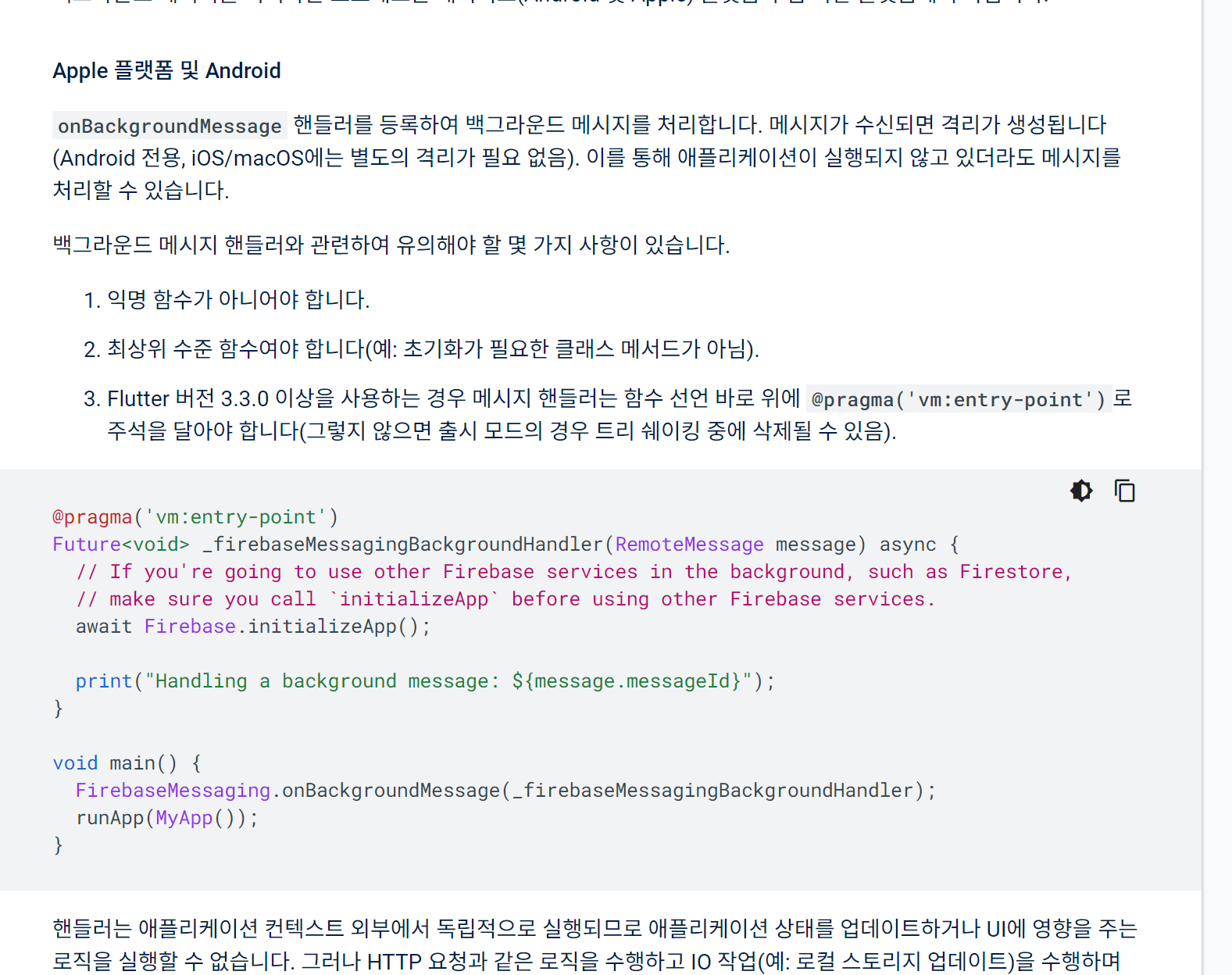 https://firebase.google.com/docs/cloud-messaging/flutter/receive?hl=ko