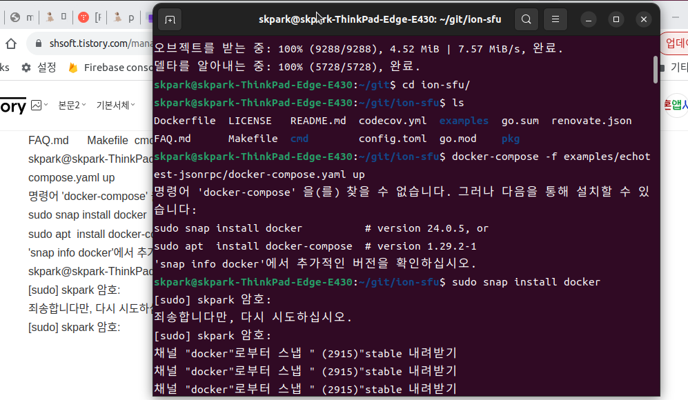skpark@skpark-ThinkPad-Edge-E430:~/git/ion-sfu$ sudo snap install docker