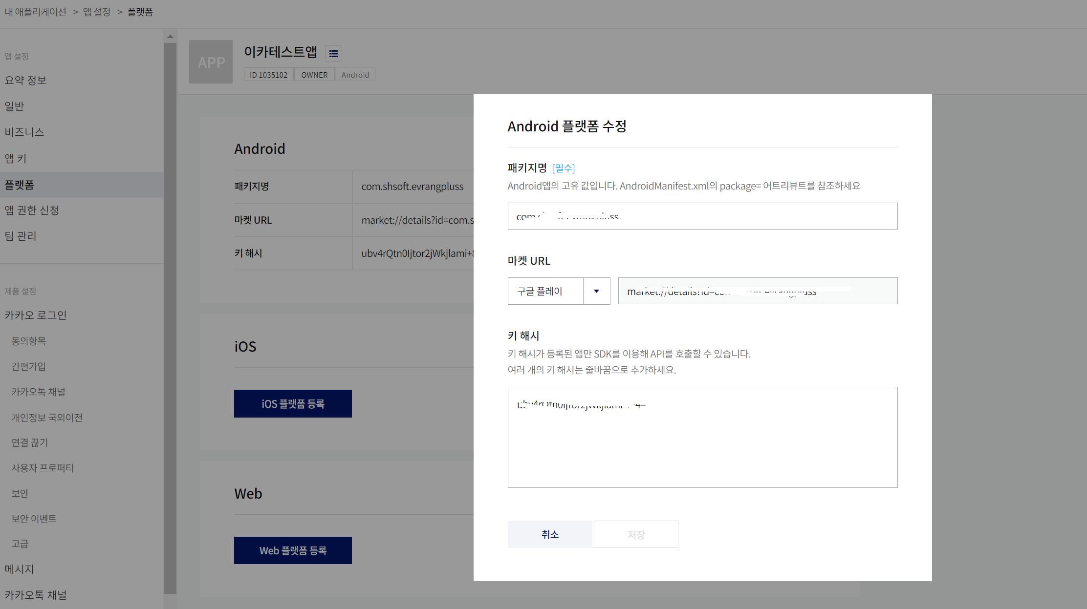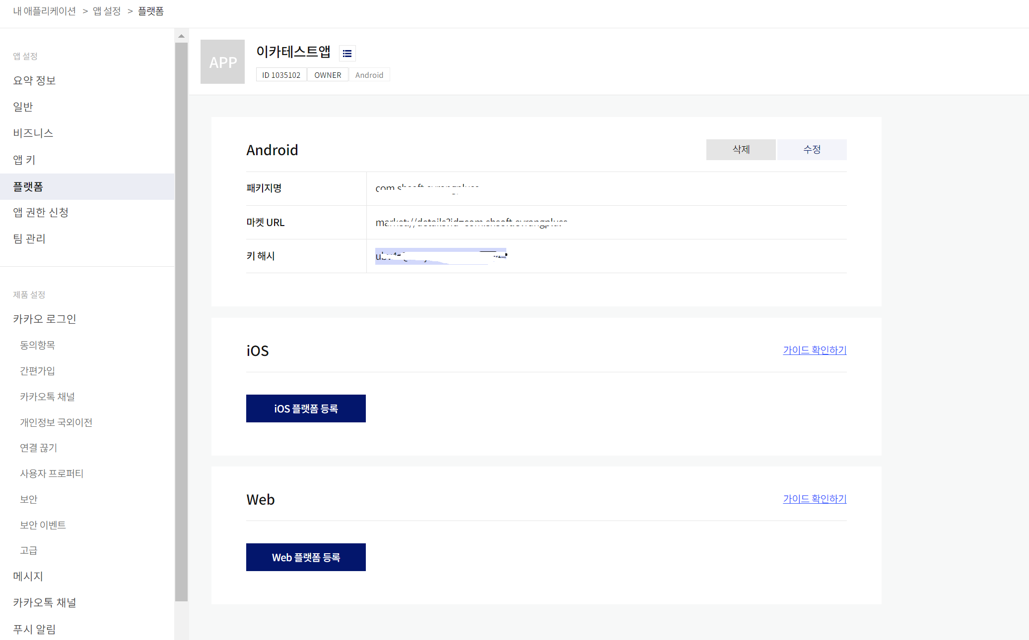 저기서 키값을 찾아서 kakao 에 키값을 등록하면된다.