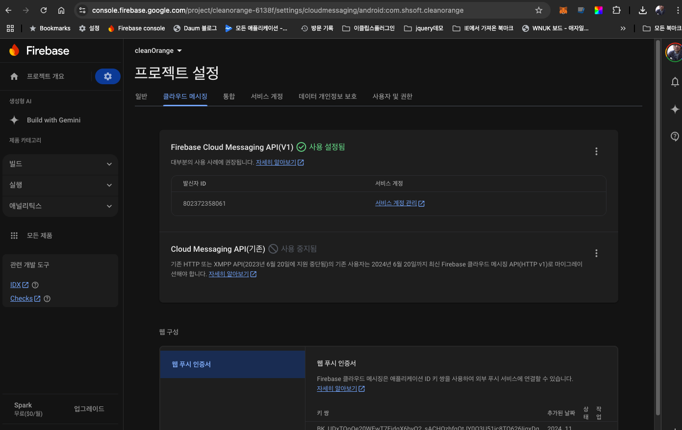 firebase php 메세지 보내기 키값생성하고 소스 수정 본문