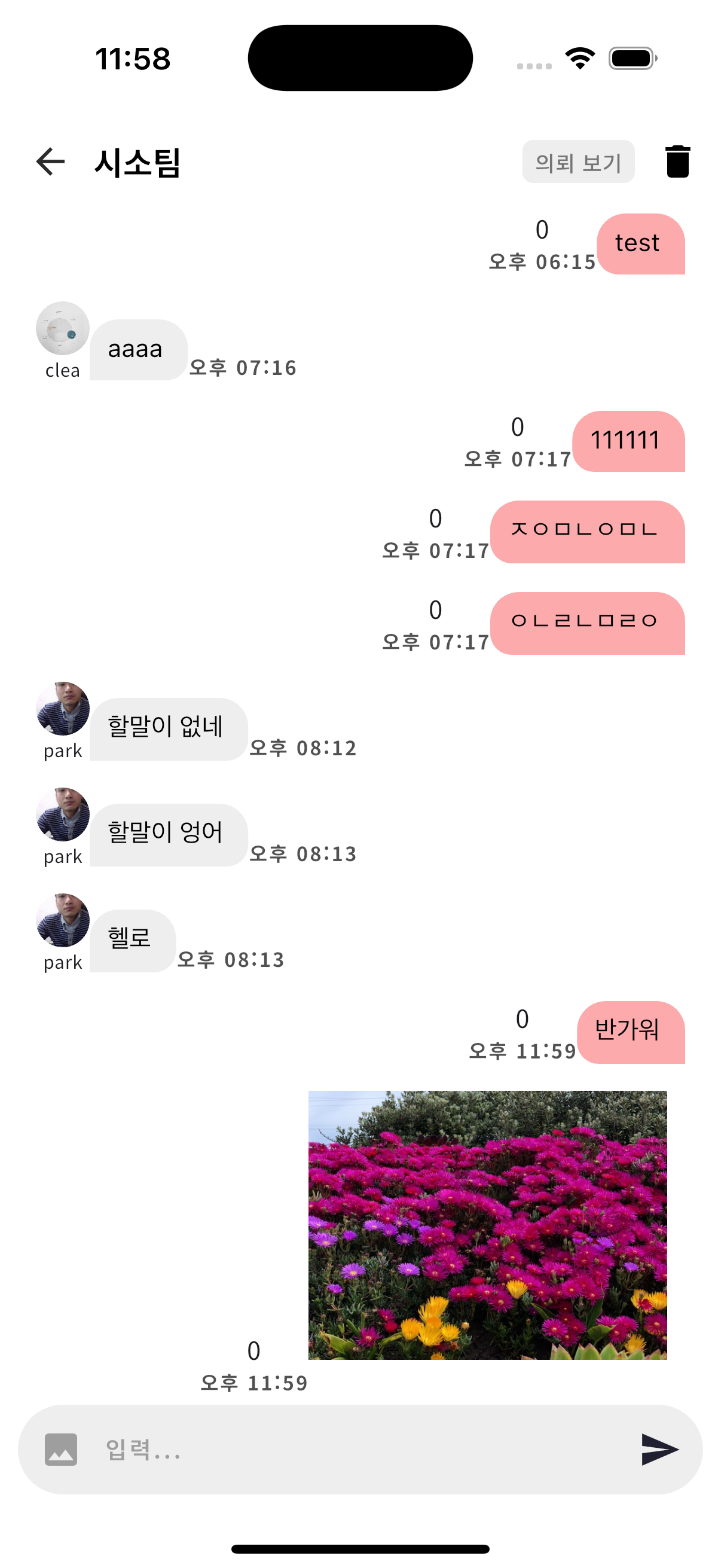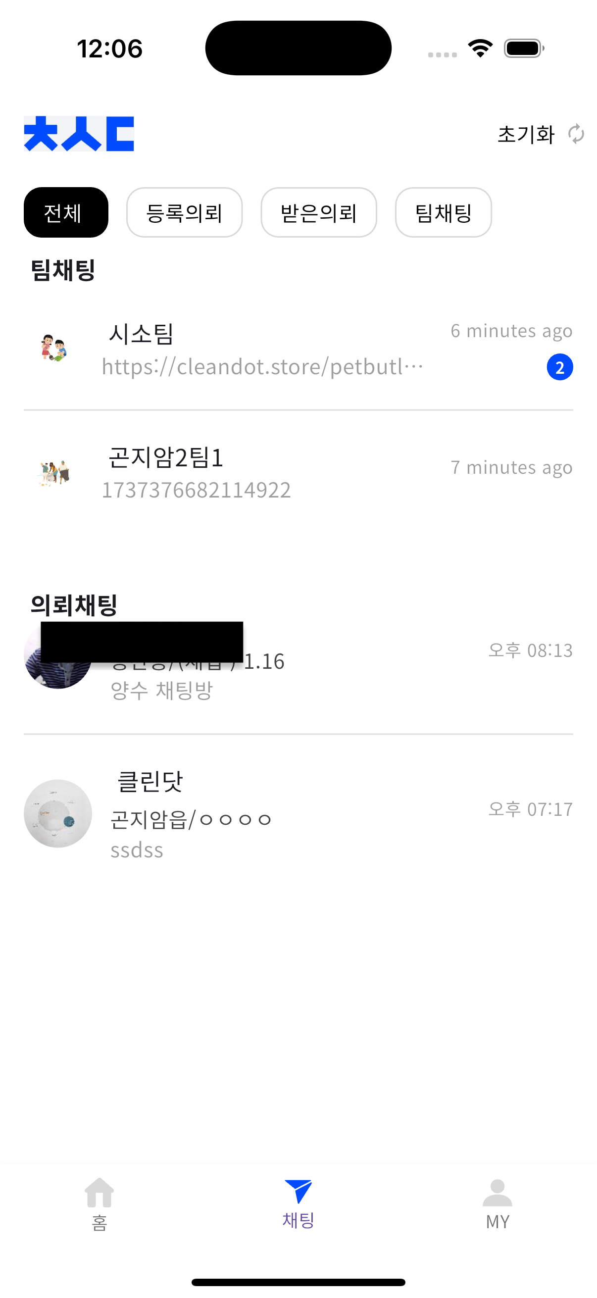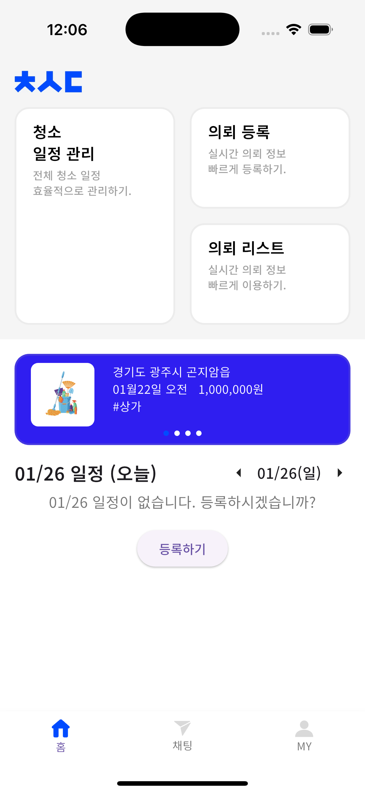 청소닷 일정관리 커뮤니앱 채팅 작업 화면