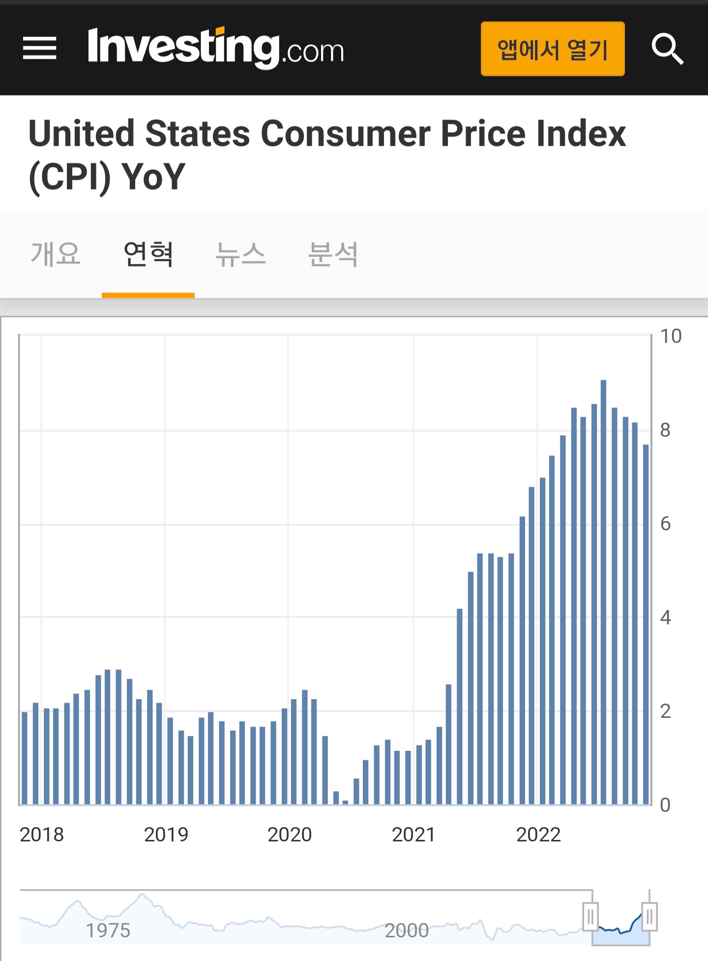 [전년대비로 표시하는 것이 전월이 아니라 헷갈린다 그렇다면 만약 오르지 않는다면 내년엔 확 떨어지는 시기 올 것으로 예상될 거다 지금은 너무 오른 상태라 유지만 해도 일 년 대비 높게 나오는 게 맞는 것 같다]