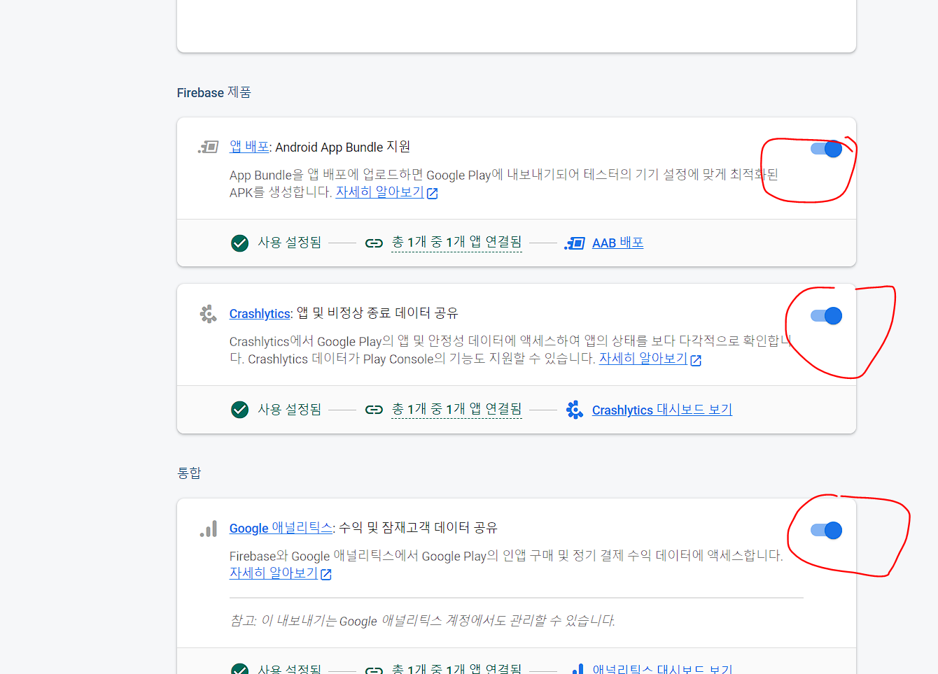 앱개발 출시후 전에는 sha파일을 가져와서 등록해주었는데 지금은 아래 google paly 연동하기로 처리한다.