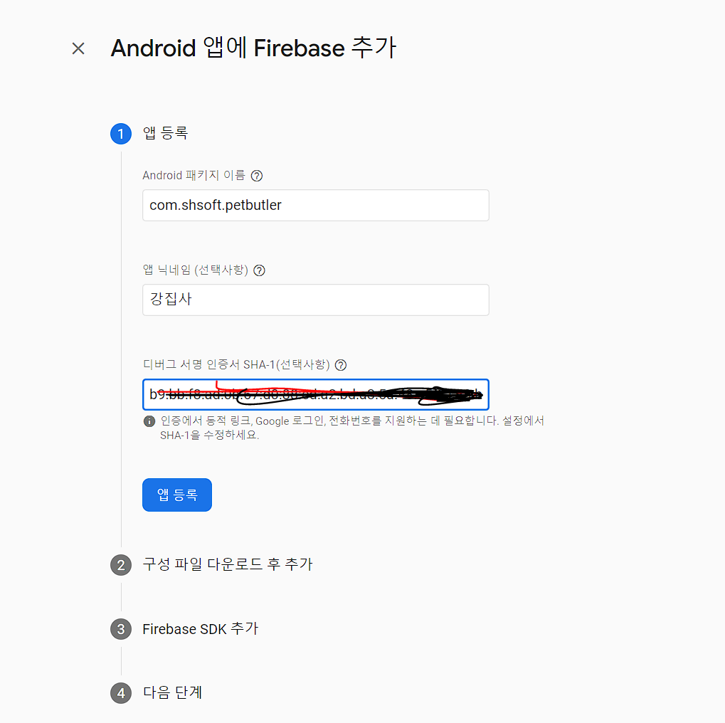 - 위에 디버그 서버 인증는 안드로이드 앱을 개발하고 등록 할 때 필요하다.