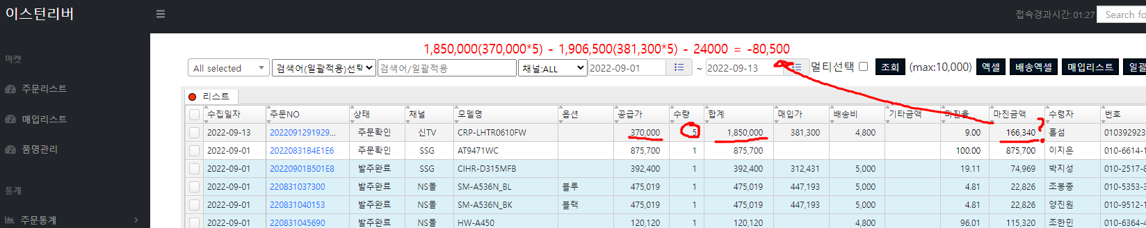 3. 가격 계산 오류 ( 매입가 곱하기 처리 안함 ㅠㅠ)