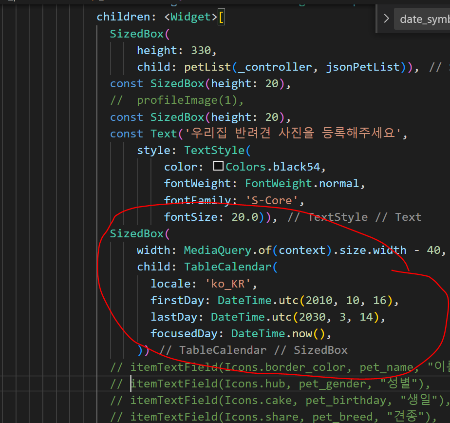 - 관련 패키지를 추가하고 플러터에서 유명한 Table_Calendar 를 사용해보고 한글 설정 해보았다.