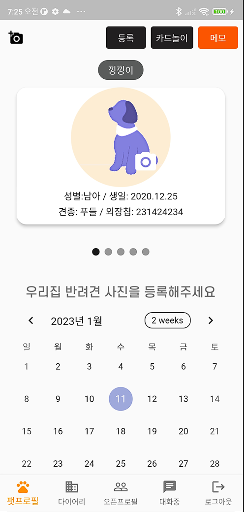 [펫버틀러] 반려 동물 고민 상담 앱 - 개발 12 일차 (프로필화면에 달력적용) 본문