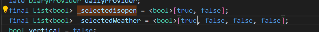 - 적용할 값을 셋팅하기 위해 해당하는 값을 list 형태로 제공한다. default 로 true 넣어도되고 모두 false 넣어서 선택하게 할 수도 있다.