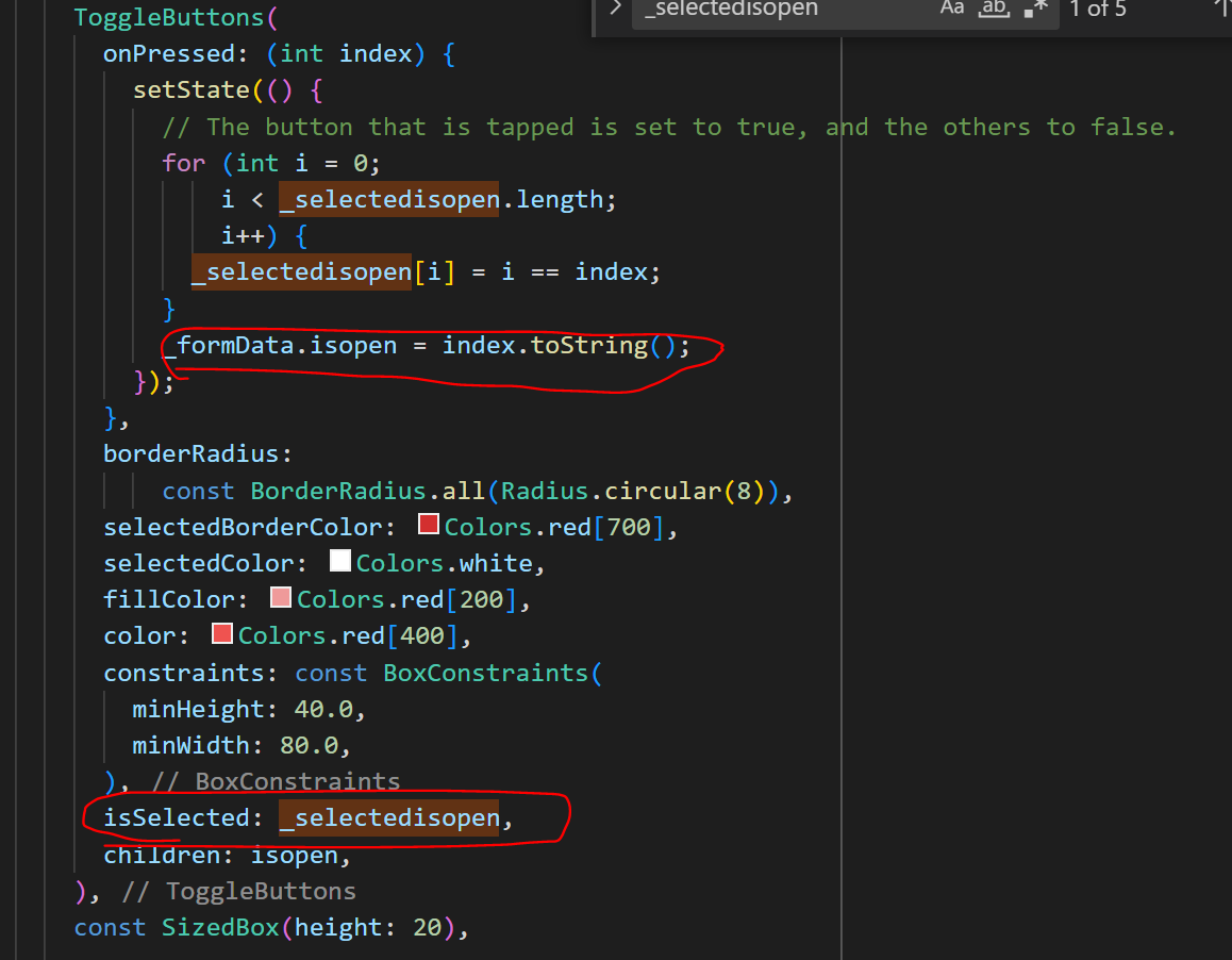 - 플러터에서 기본 제공하는 ToggleButtons 기능 으로 적용가능하다.