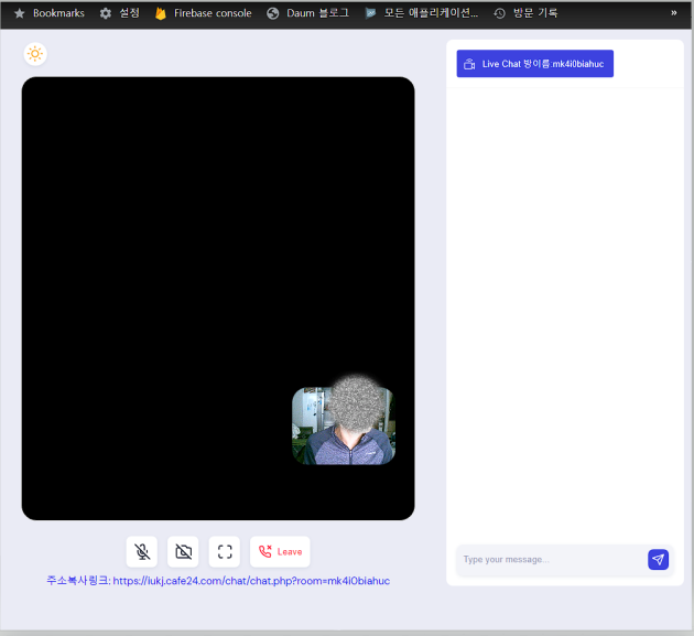 - 방을 만들면 룸 id 가 자동 생성되며 링크를 통해 양방향 화상 채팅이 가능하다.
