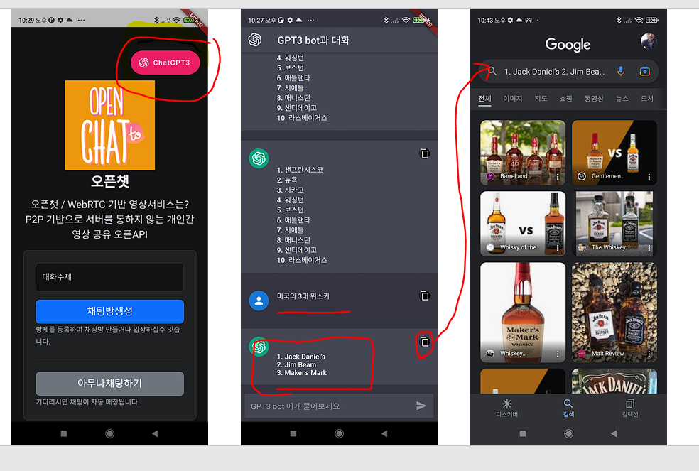 구글검색을 통해 chatgpt3 .관련 flutter 개발 오픈소스를 검색했으나 정확이 딱 맞는 소스를 구하기 힘들어서 약간 편집해서 오픈채팅앱에 추가하였다.