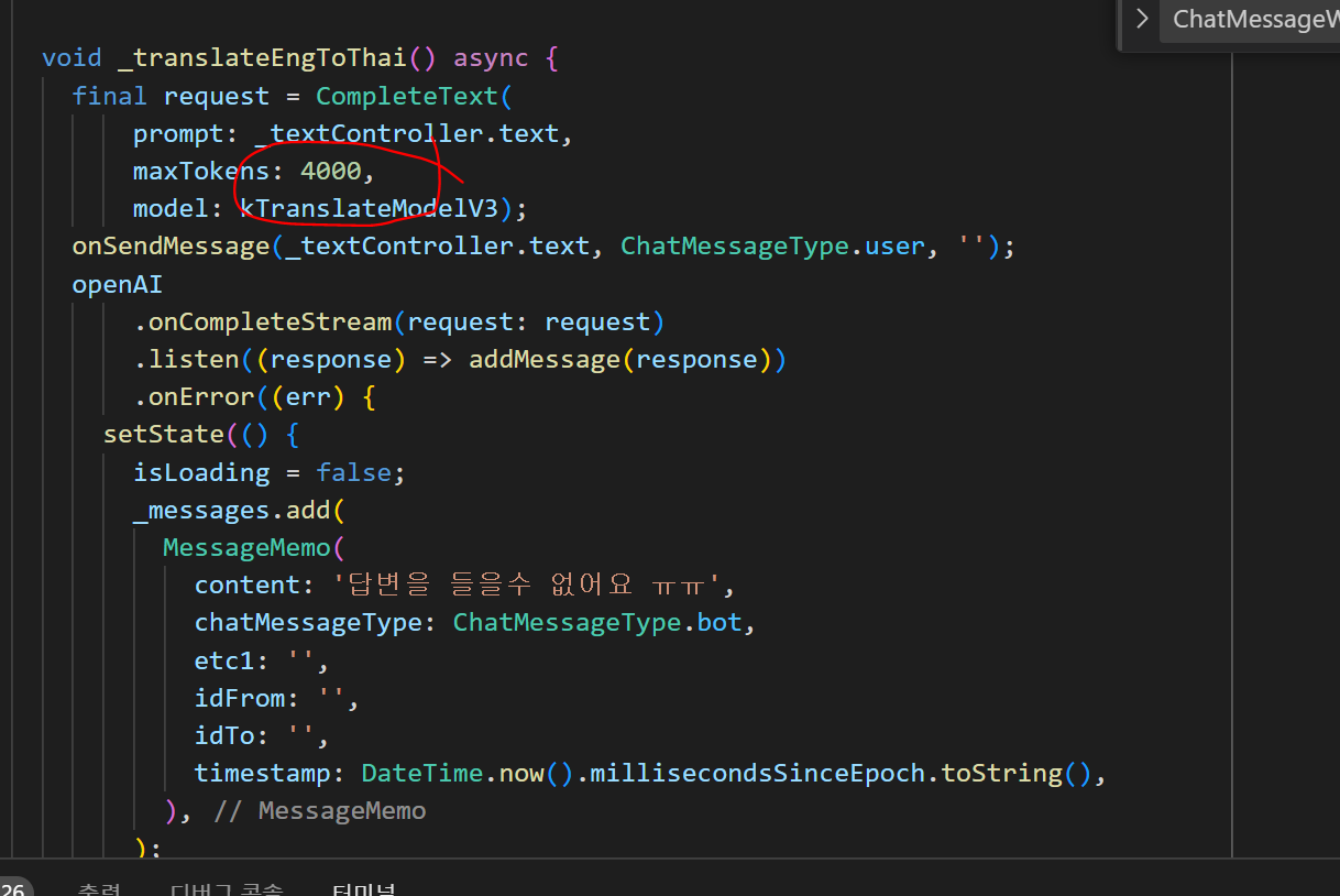 | flutter chatgpt3 연동해서 오픈 채팅방에 추가하였다. (0) | 2023.02.14 |